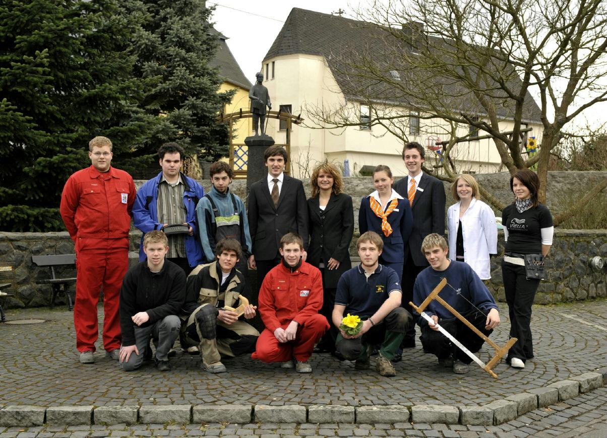 vorn hockend von links: Jonas Gläßer, 3. Lehrjahr Zweiradtechnik Krekel, Marco Hannappel 1. Lehrjahr Küchen Gorn, Matthias Wagner, 1. Lehrjahr Elektro-Michel, Stefan Schmidtke, 3. Lehrjahr Blumen Pörtner und Sascha Teichert, 1. Lehrjahr Holz-Steinebach.