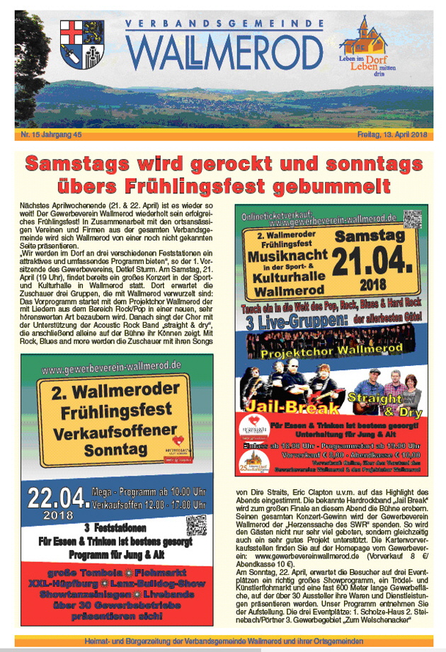Titelseite Mitteilungsblatt Verbandsgemeinde Wallmerod, 13.04.2018 |
