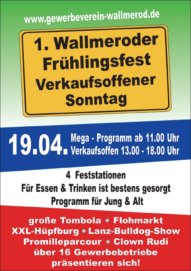 1. Wallmeroder Frühlingsfest mit verkaufsoffenem Sonntag am 19. April 2015