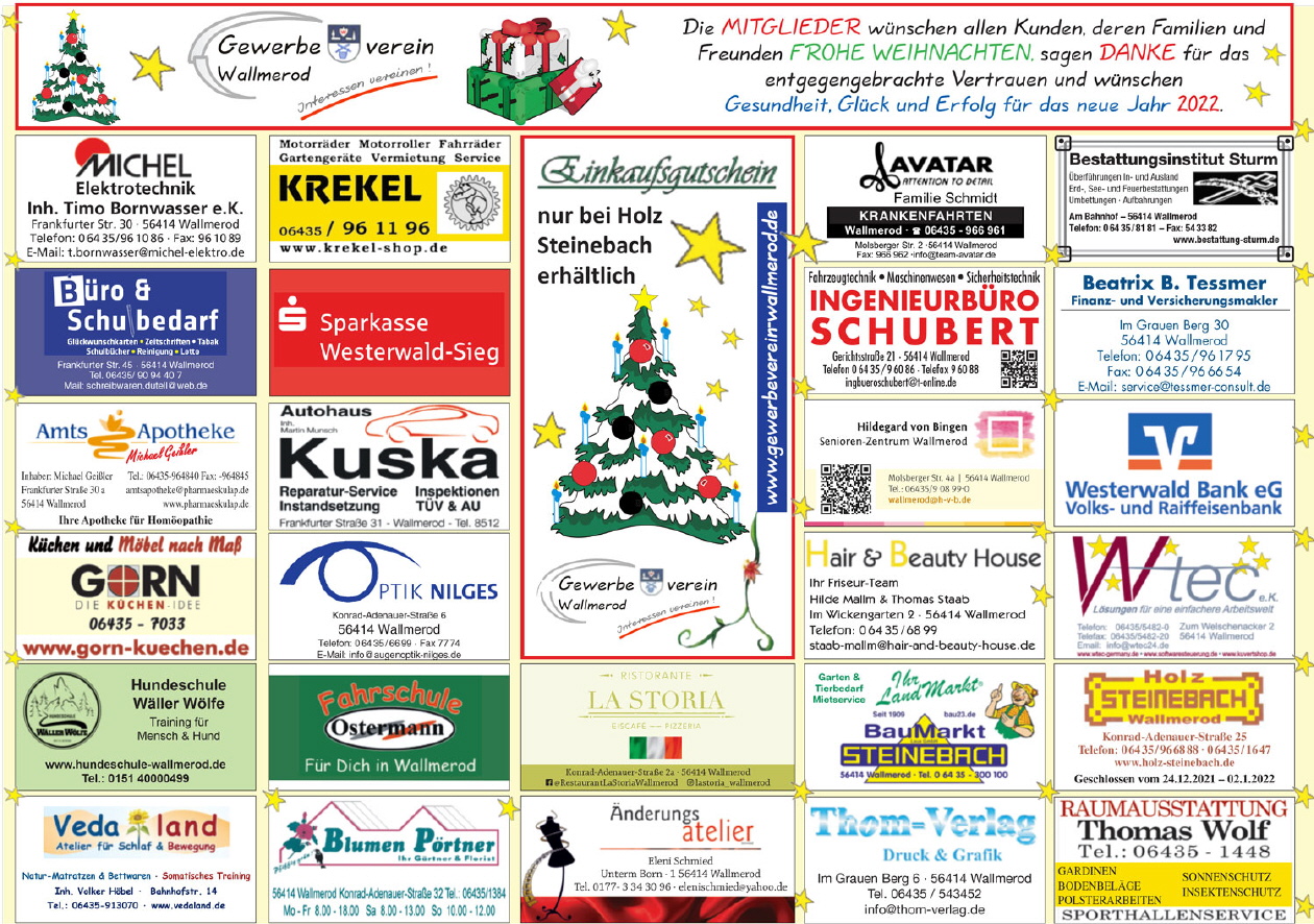 (C) Gewerbeverein Wallmerod e.V. - 2006-2024 / Alle Rechte vorbehalten! |