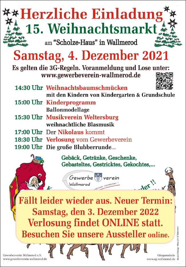 04.12.2021: 15. Weihnachtsmarkt in Wallmerod fällt leider aus... ...weiter