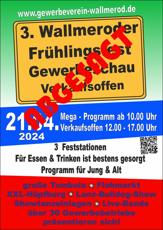 Um weniger Probleme mit Pandemieauflagen zu bekommen und um die Veranstaltung sauber vorzubereiten wurde auf der Jahreshauptversammlung im Mai 2022 vereinbart, das dritte Frühlingsfest erst im April 2024 durchzuführen. Das bedeutet trotzdem eine Menge Arbeit. Es soll ein Orgateam auf die Beine gestellt werden. Alle Wallmeroder Vereine werden gebeten mitzuwirken. Auch Privatleute und nicht im Gewerbeverein organisierte Unternehmen sind ausdrücklich in diesem Team erwünscht.