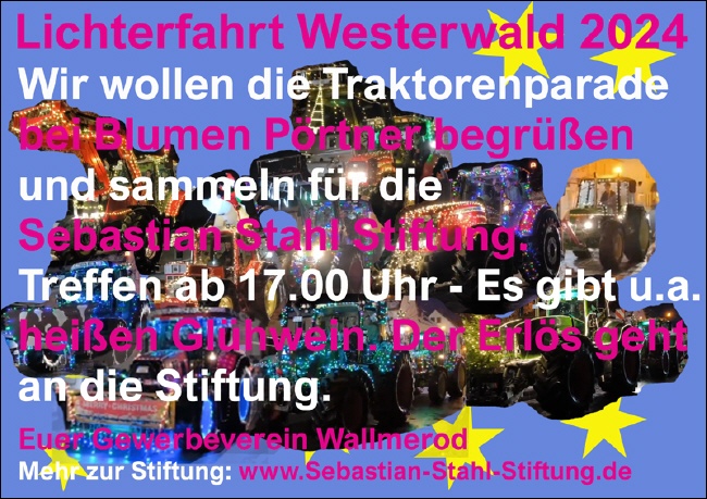 am Samstag, den 14.12.2024 fährt dieses Jahr die Traktorenparade wieder durch Wallmerod.