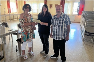 Foto: Brigida Letizia mit Kassiererin Ulrike Steinebach-Lang und 1. Vorsitzender Detlef Sturm bei der Übergabe der Mitgliedsurkunde. |