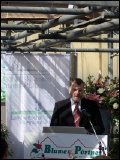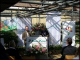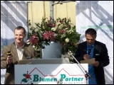 Dann konnte es mit dem Überreichung der Preise weitergehen, die an die ersten drei Platzierten des Wettbewerbes „Gärtnerei des Jahres“ gingen. Bereits zum siebten Mal wurde dieser Wettbewerb „Gärtnerei des Jahres“ durchgeführt. Von Anfang an galt es für die Teilnehmer aus den über 400 Gärtnereien in Rheinland-Pfalz strenge Kriterien zu erfüllen. Unter diesen Kriterien waren der Verkauf, die Kundenfreundlichkeit, die Qualität und das Angebot der Ware, das Umweltbewusstsein und die Dienstleistung. Vor fünf Wochen kam nun eine Jury nach Wallmerod, die sich unangemeldet ein Bild über das Unternehmen und die Einhaltung der Kriterien machte. So sprangen für das Unternehmen nicht nur 80 von 100 möglichen Punkten heraus. Am Ende war das Unternehmen Pörtner auch „Gärtnerei des Jahres 2007“ vor der Gärtnerei „Blumenhaus Fink“ aus Kettig und „Blumen & Garten Frondorf“ aus Gau-Bickelheim, die alle eine Urkunde und einen Pokal erhielten. Der Sieger des Wettbewerbes, in diesem Jahr die Gärtnerei Pörtner, ist für die nächsten fünf Jahre für diesen Wettbewerb gesperrt. |